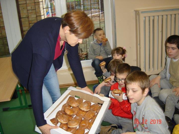 Radości było co niemiara, chociaż podarowany sprzęt zostanie wypróbowany i wykorzystany dopiero przy wiosennej pogodzie. Było słodko i wesoło. Z wielką ochota śpiewano również kolędy przy wykonywanej muzyce jednej z Pań opiekunek.